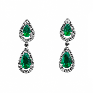 • Aretes de Gotas en Oro Blanco 18k con Diamantes y Esmeraldas