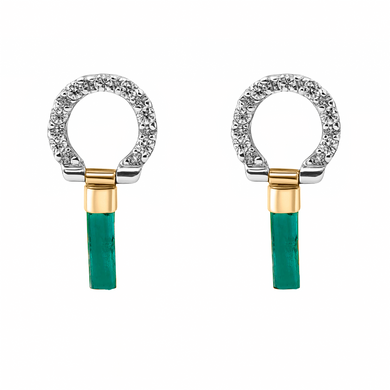 • Aretes Dos oros Blanco y Amarillo 18k, Con Diamantes y Esmeralda