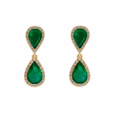 • Aretes de Lagrima en Oro Amarillo 18k con Esmeraldas Diamantes