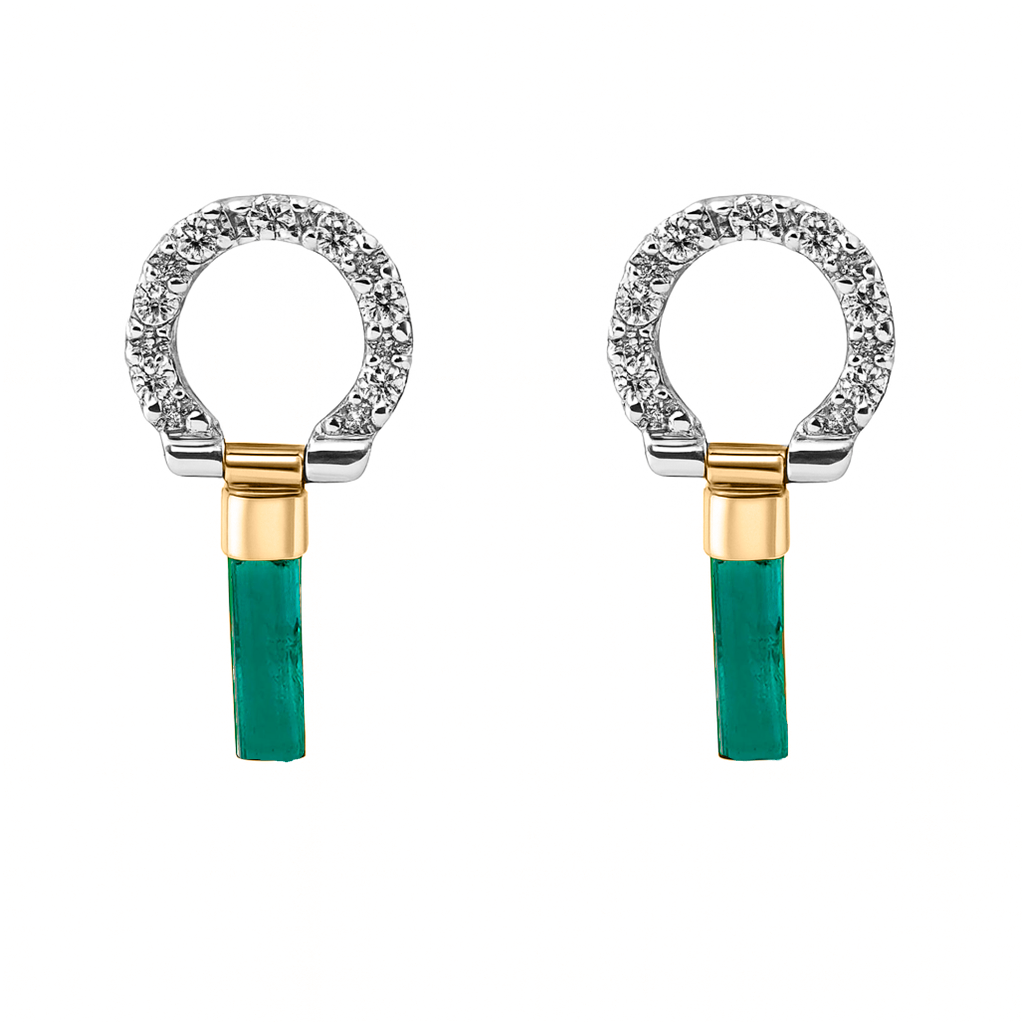 Aretes Con Canutillos En Esmeralda Con Diamantes En Oro Blanco 18k