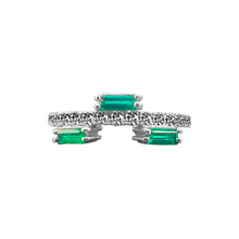 Anillo Trio de Esmeralda con Diamante en Oro Blanco 18k