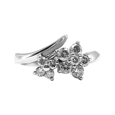 Anillo Curvo con Flores en Oro blanco y Diamantes