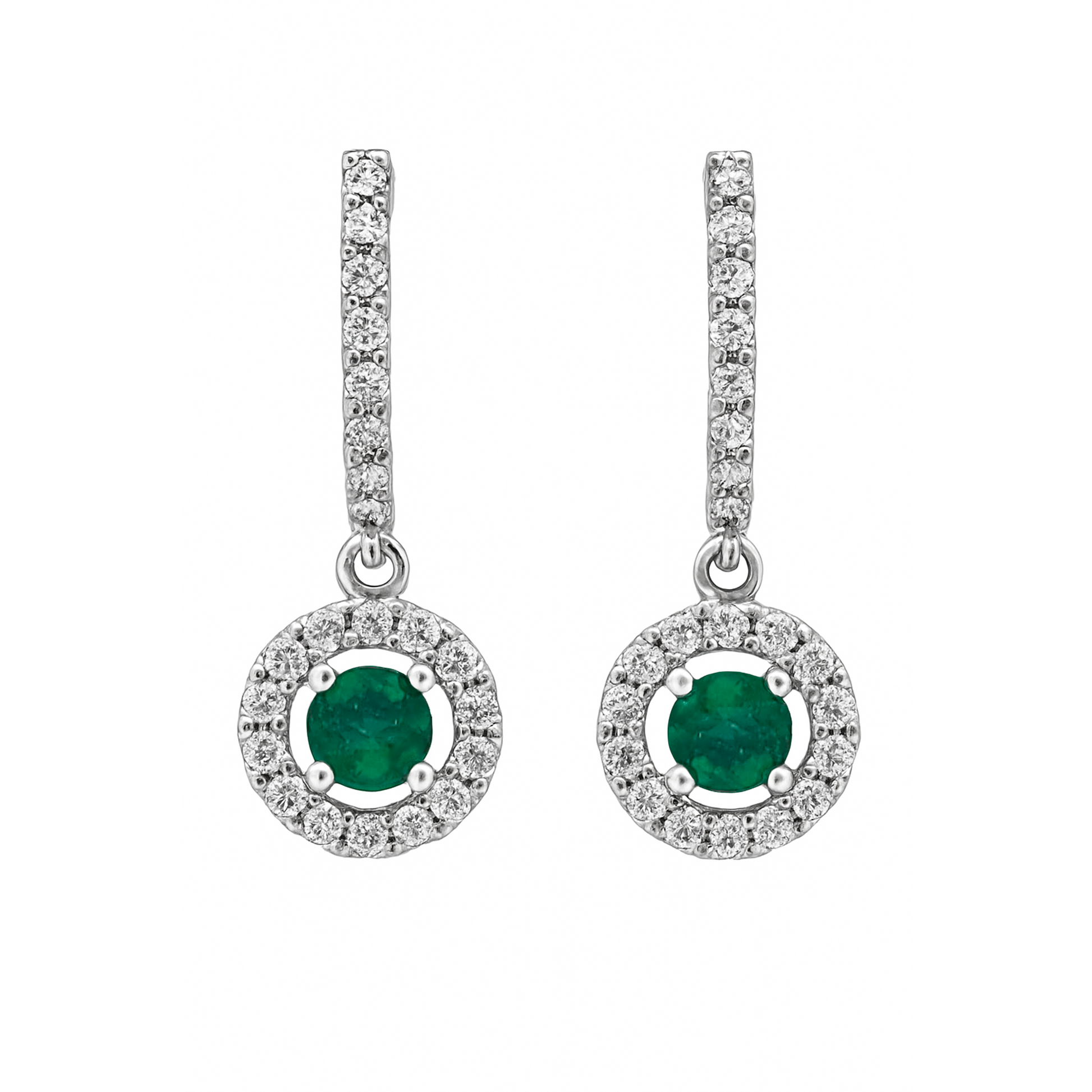Aretes Rueda Con Esmeralda y Diamantes En Oro Blanco 18k