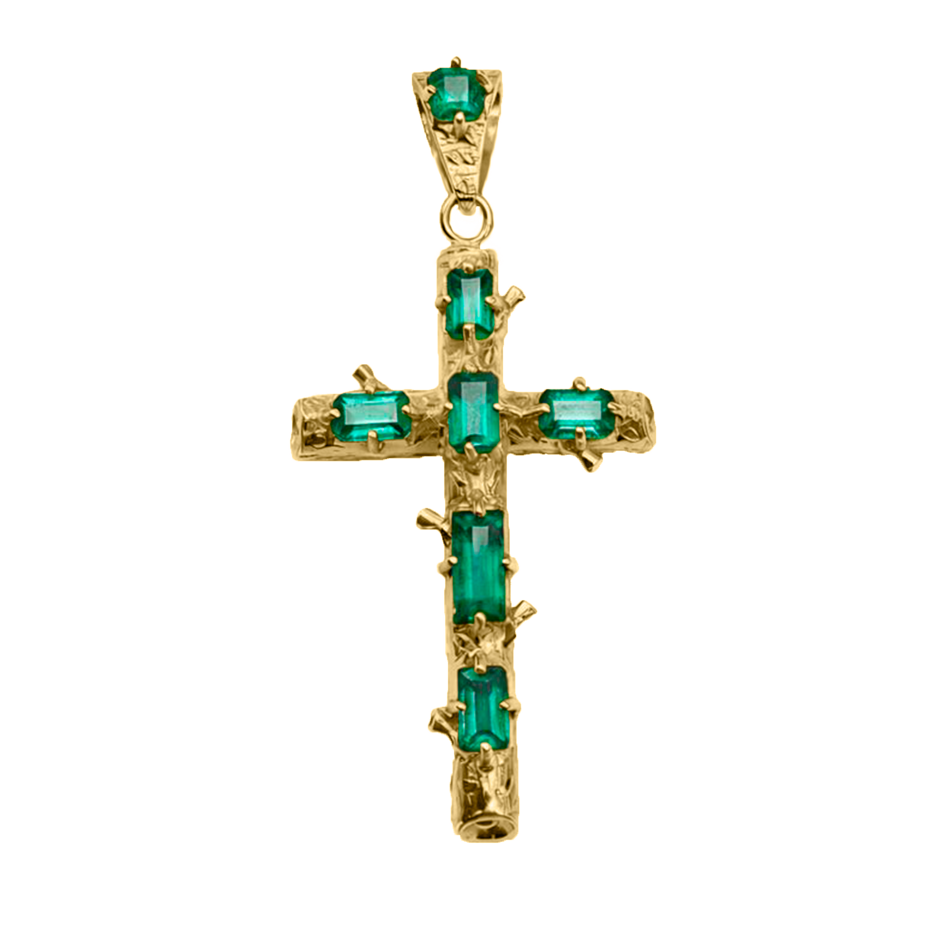 Cruz en Oro Amarillo 18k con Esmeralda estilo Rustico