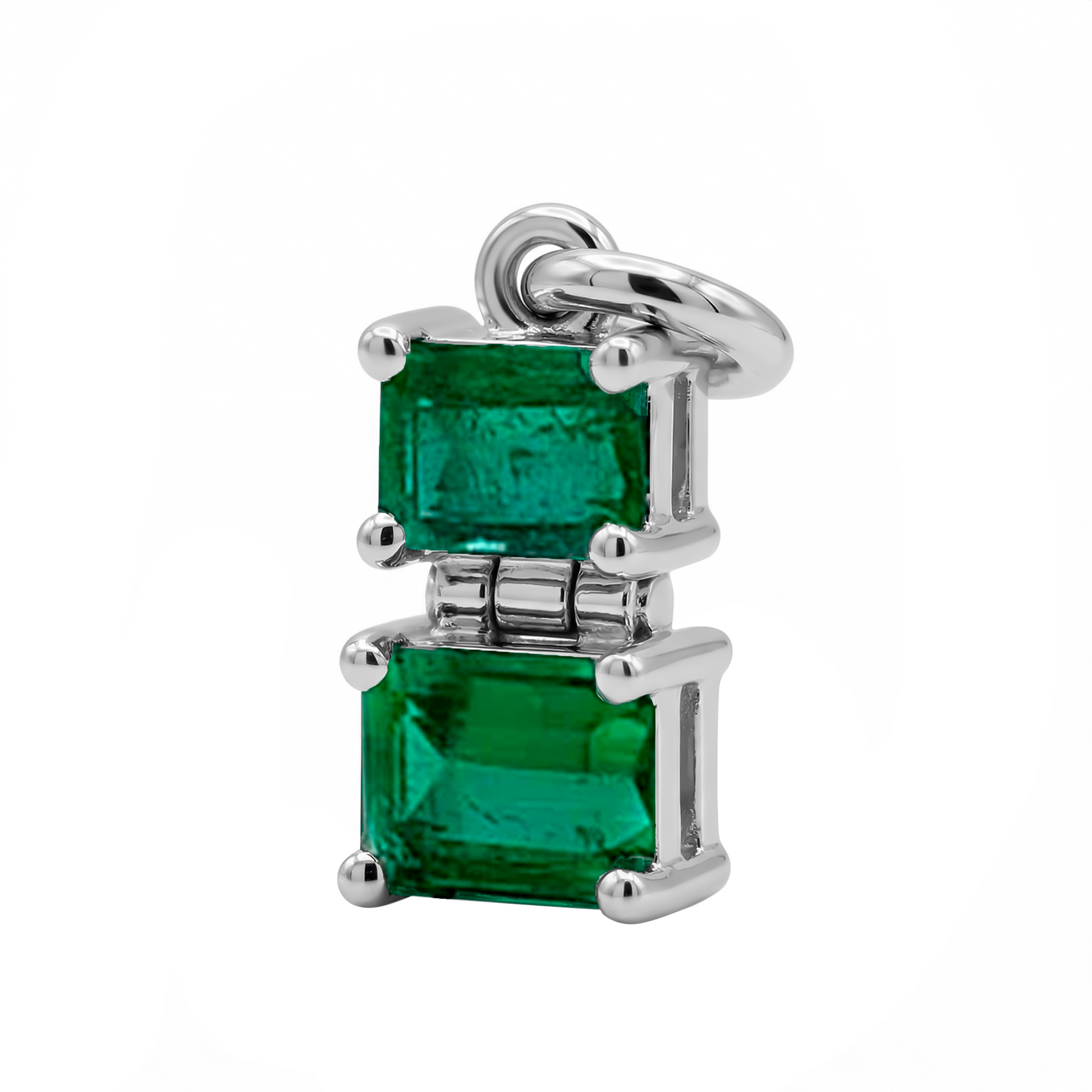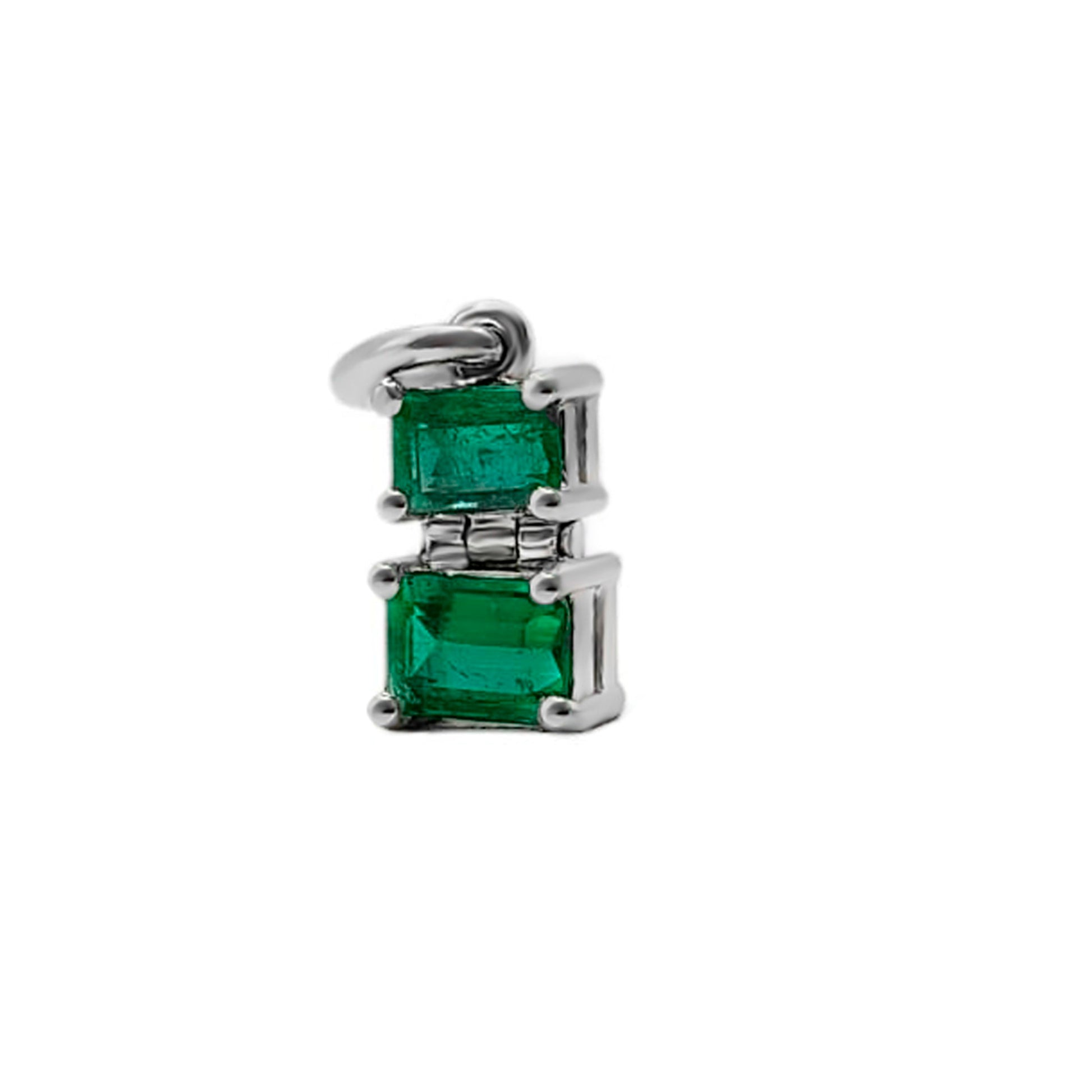 Dije Con Esmeralda En Oro Blanco 18k