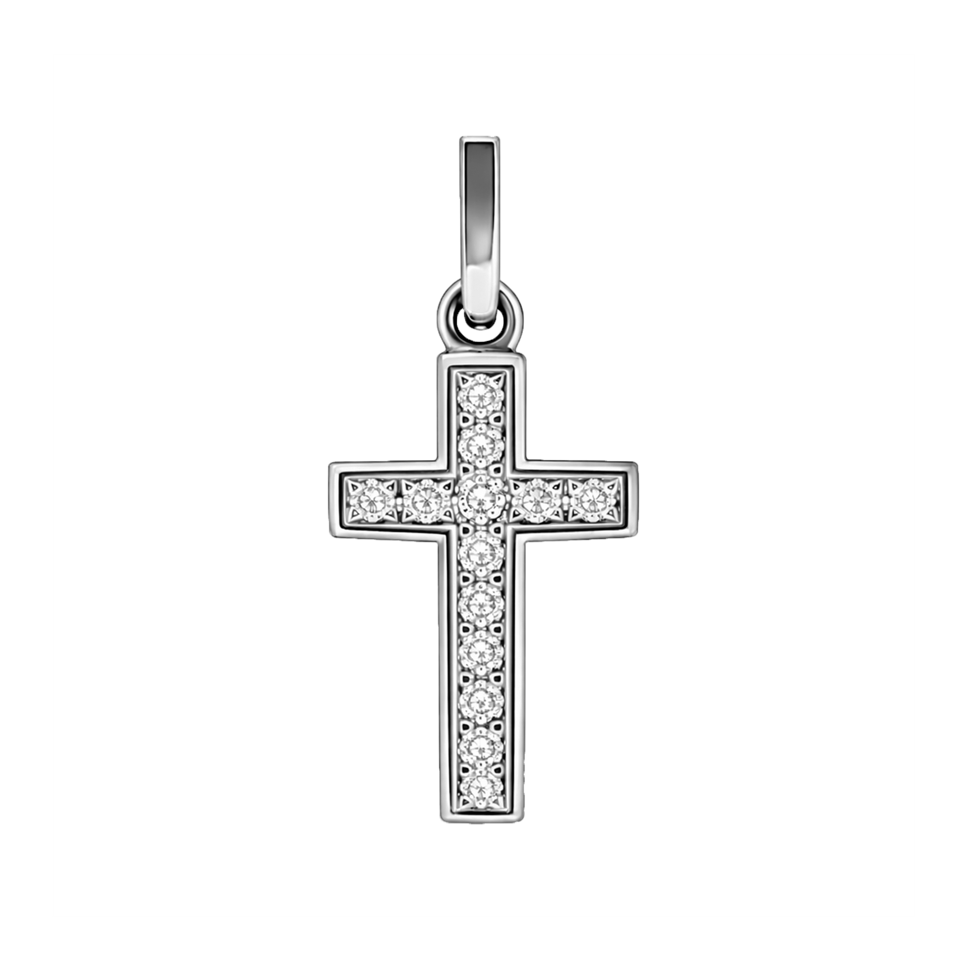 Dije Cruz en Oro Blanco 18 K con Diamante