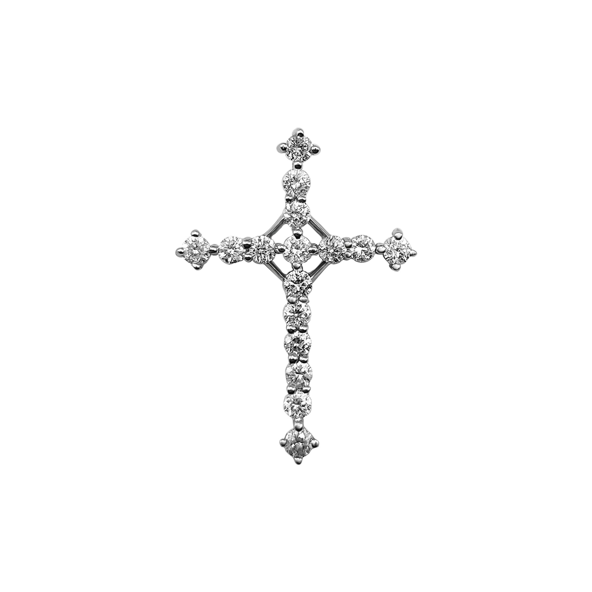 Dije Cruz Med en Oro Blanco 18 K con Diamante