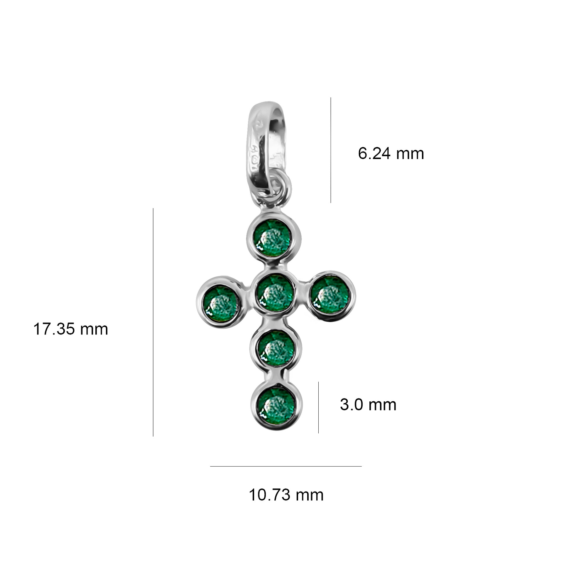 Características: Cruz de oro blanco 18 k con Opción para escoger entre Esmeralda, zafiro, circón de talla redonda , modelo cruz con pasa cadena.