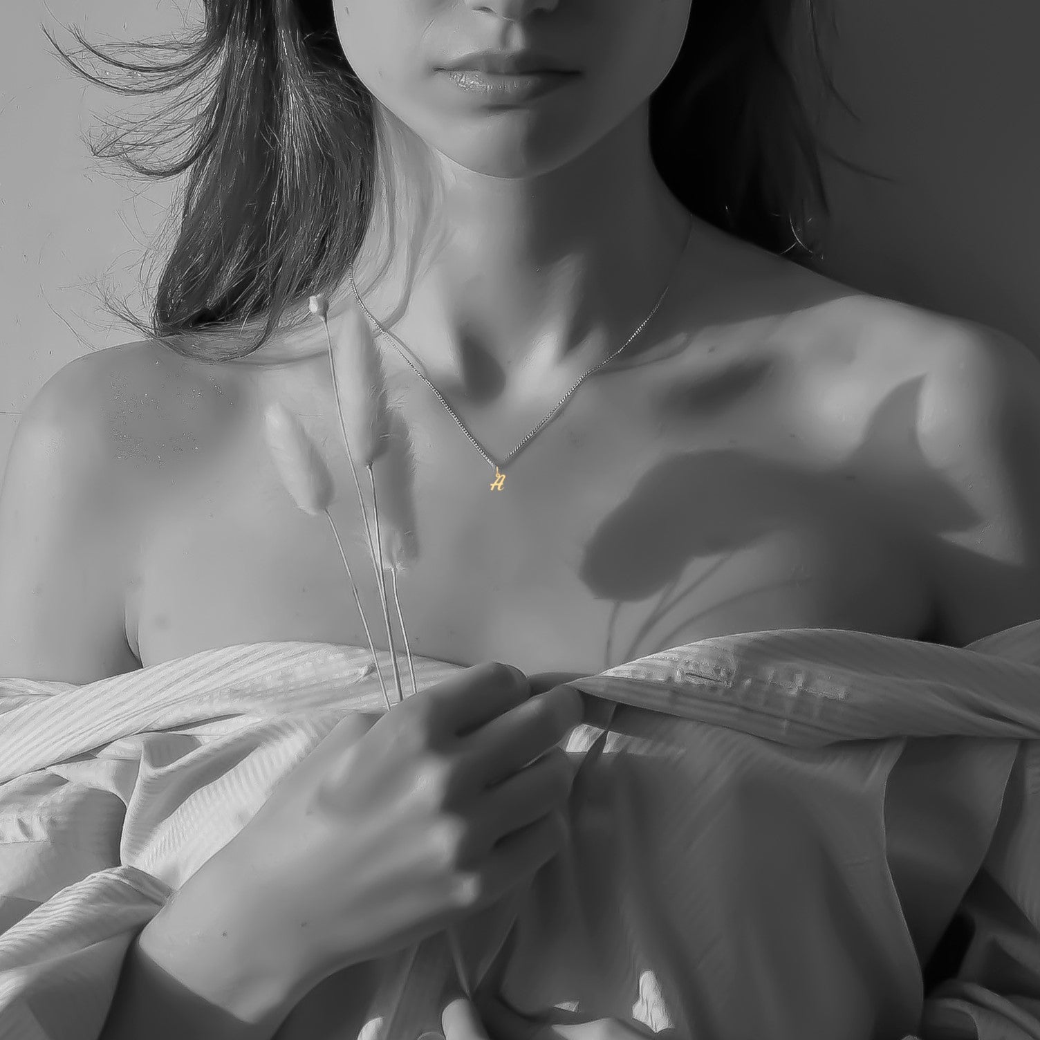 Colgante de oro hecho a mano con inicial de silueta pequeña y delicada