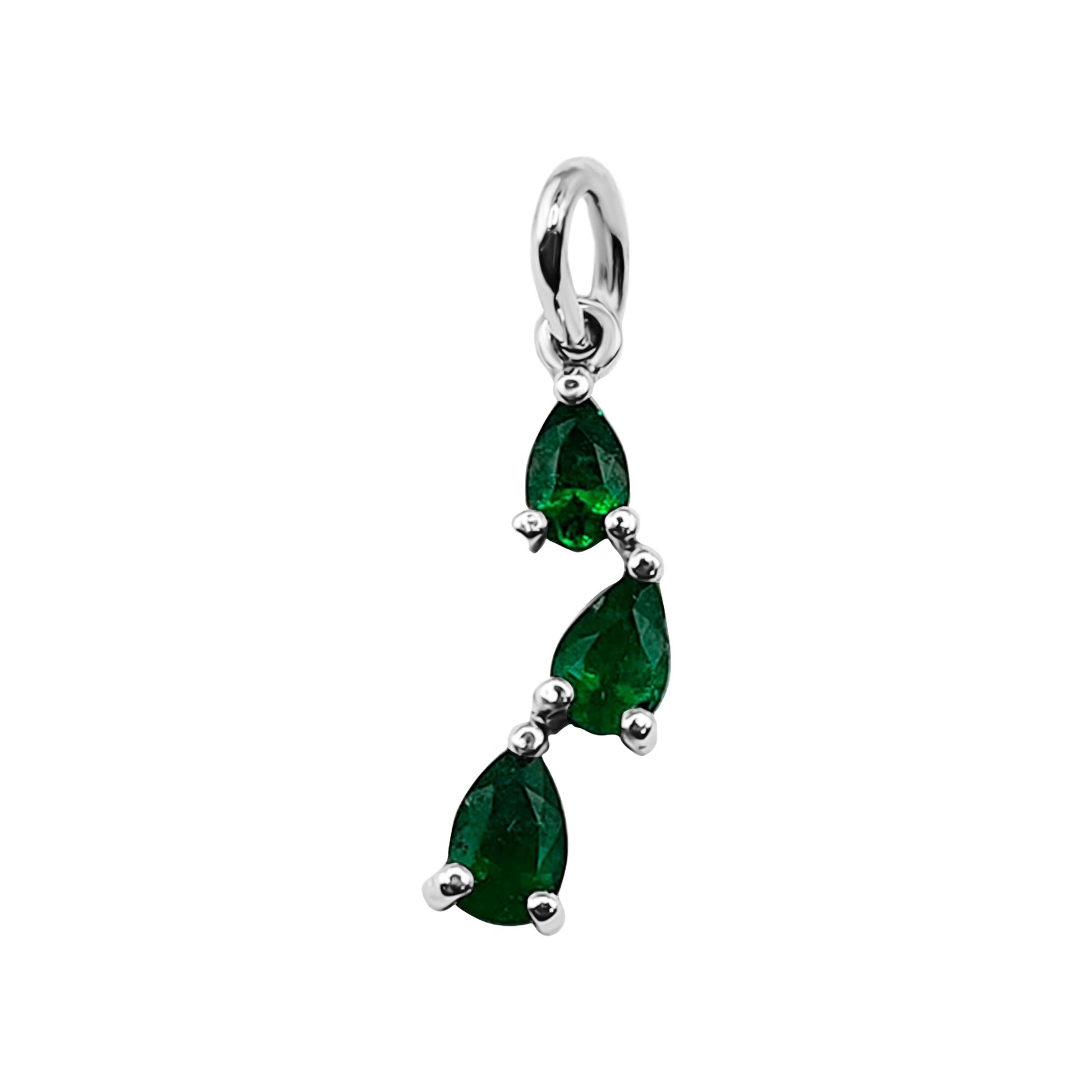 Dijes Tres Lagrimas de Esmeralda Oro Blanco 18k