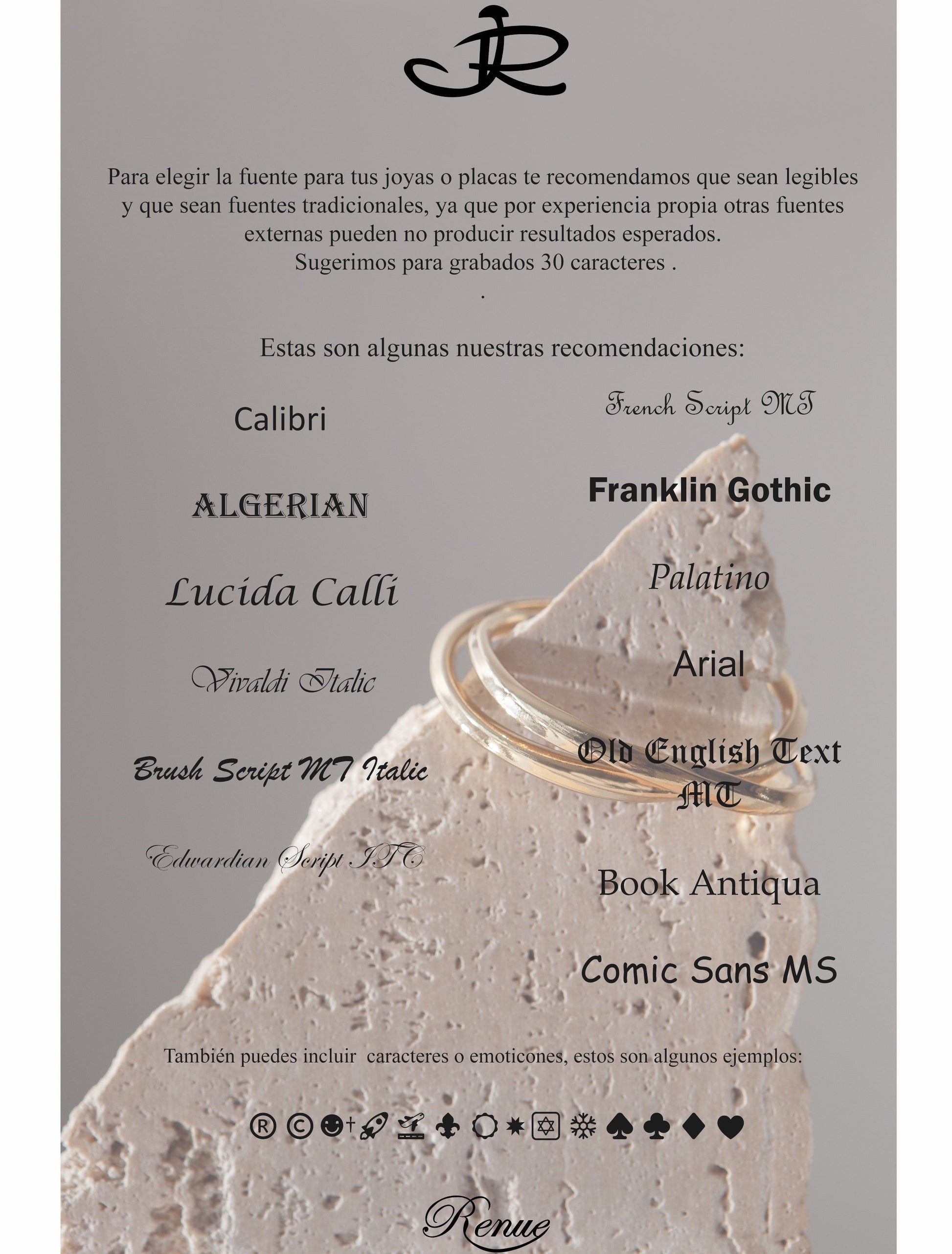 Ideal para regalos o darte un gusto es un dije o charm del tipo placa de hueso para grabar por los dos lados con un Rodio (efecto Baño de Oro Blanco )que No incluye estuche ni Cadena, el Mantenimiento es gratis por el primer año