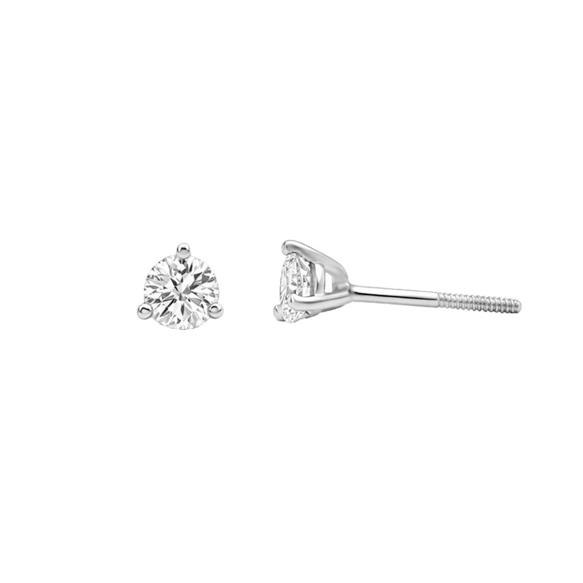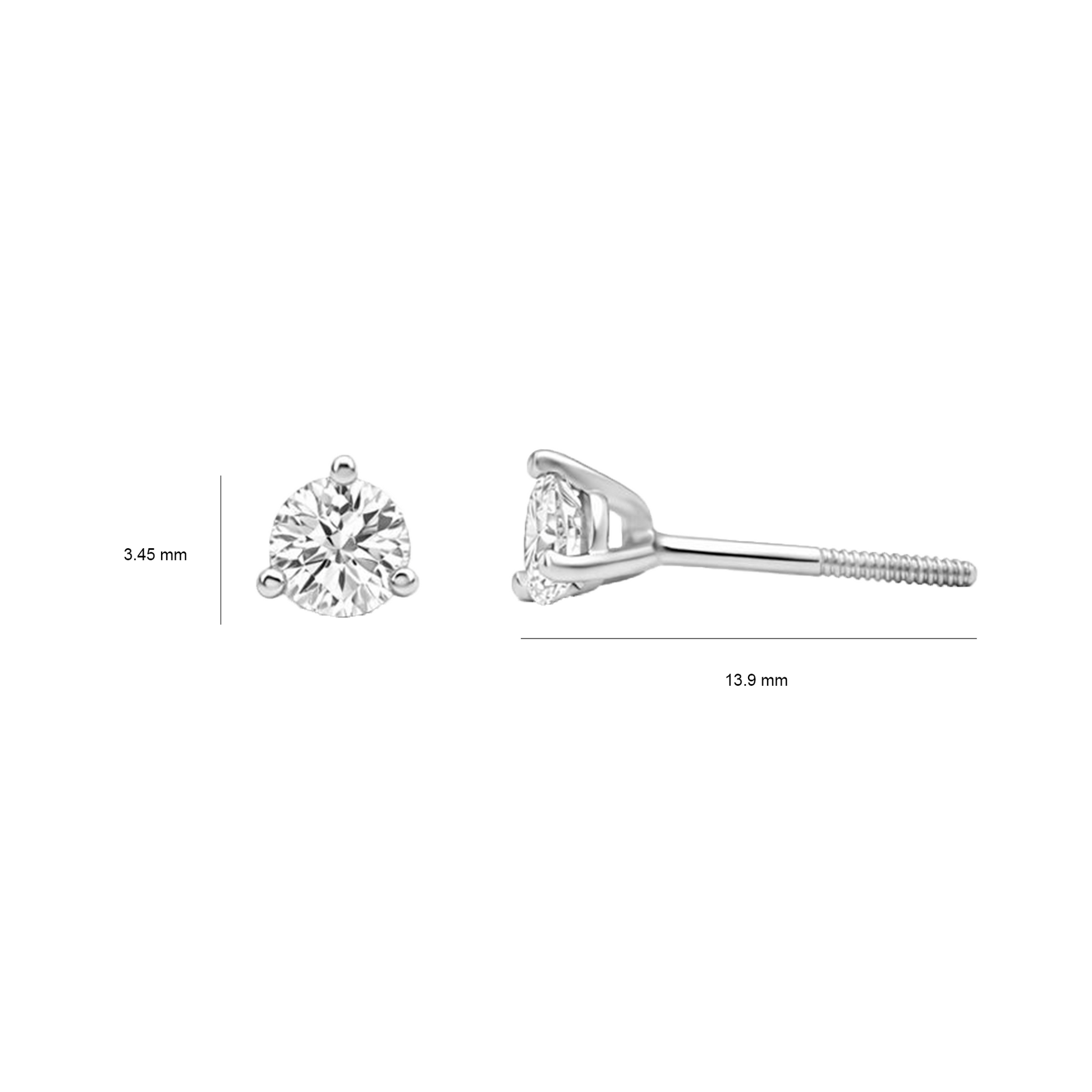 Características: Oro blanco18K con diamantes de talla redonda y Sistema de Rosca de Seguridad, Garantía de por vida de los materiales.