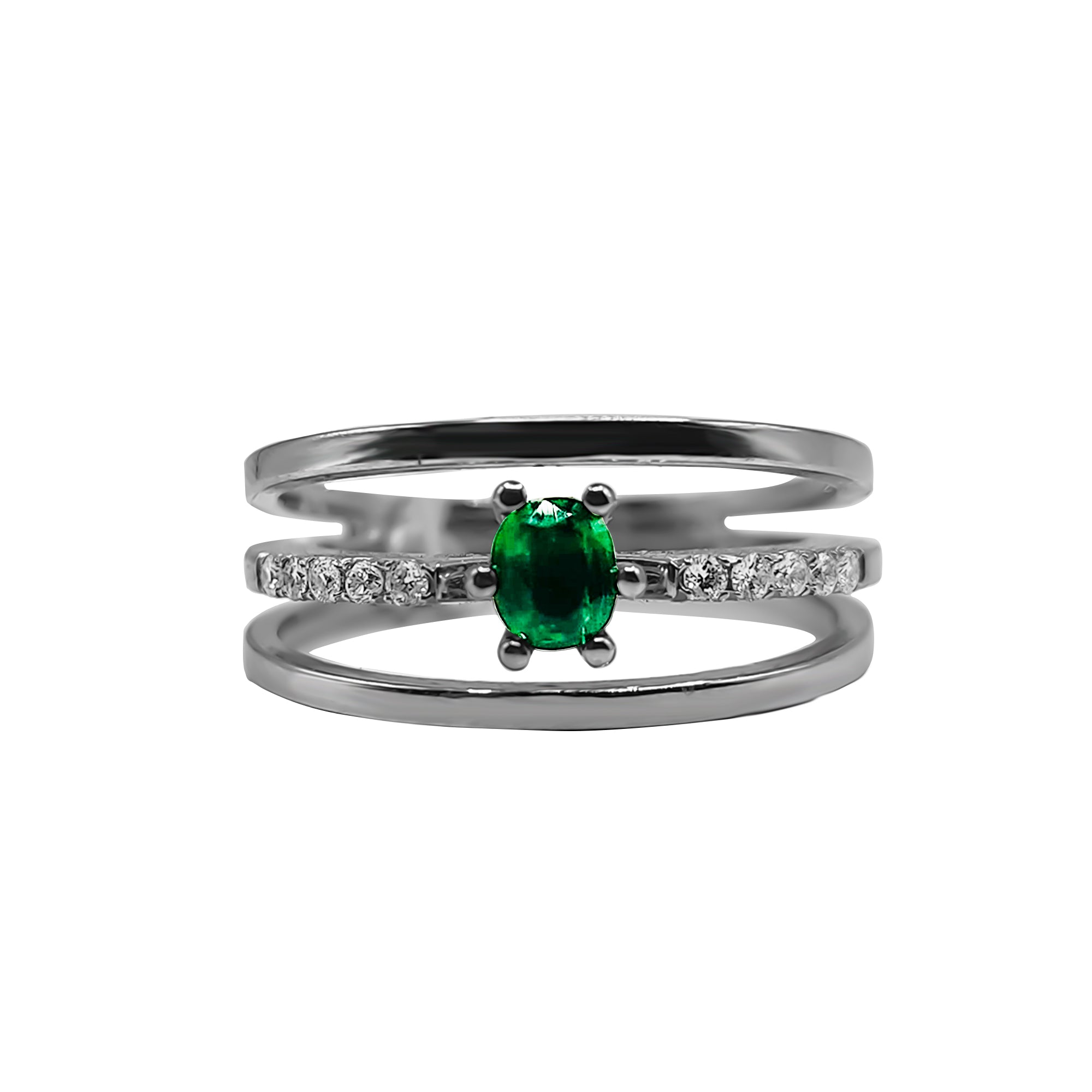 Tres Aros Central Adorno Esmeralda Oro blanco 18k